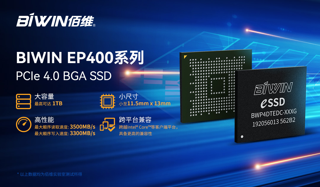 根據(jù)佰維實(shí)驗(yàn)室數(shù)據(jù),佰維EP400在與eMMC/UFS同尺寸的前提下,讀寫(xiě)速度均是PCIe 3.0 BGA SSD E009系列的兩倍,且遠(yuǎn)高于UFS 3.0/3.1產(chǎn)品,在旗艦型移動(dòng)智能終端應(yīng)用上綜合優(yōu)勢(shì)明顯,是二合一筆記本電腦、旗艦智能手機(jī)、自動(dòng)駕駛、無(wú)人機(jī)等應(yīng)用的絕佳存儲(chǔ)選擇。